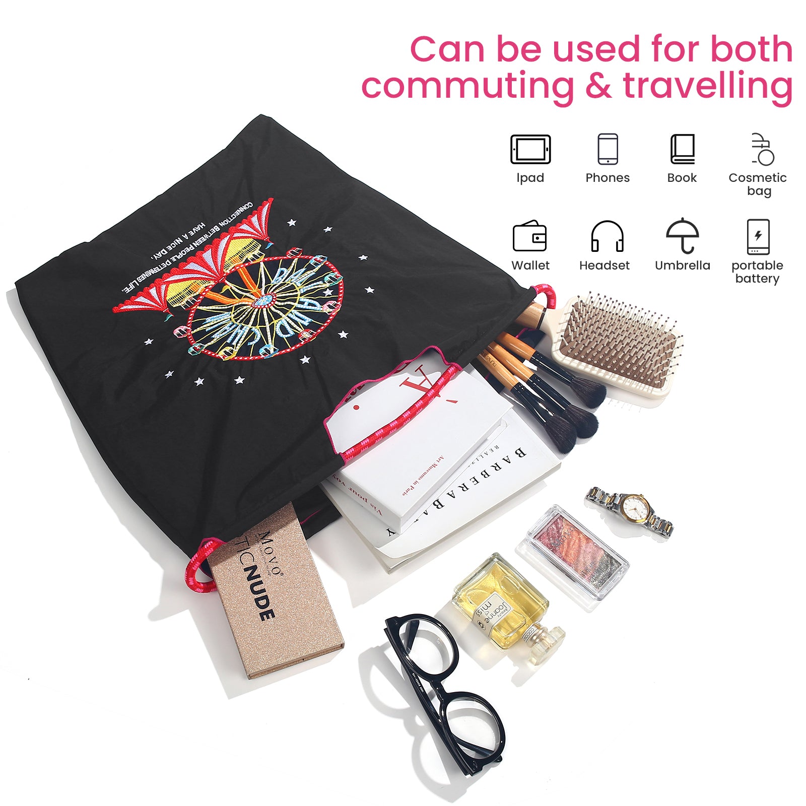 Ball&Chain Embroidery Ferris Wheel Nylon Tote Bag for Women, HandBags Large Capacity Casual Handbags for Mom Teacher Friend(M)