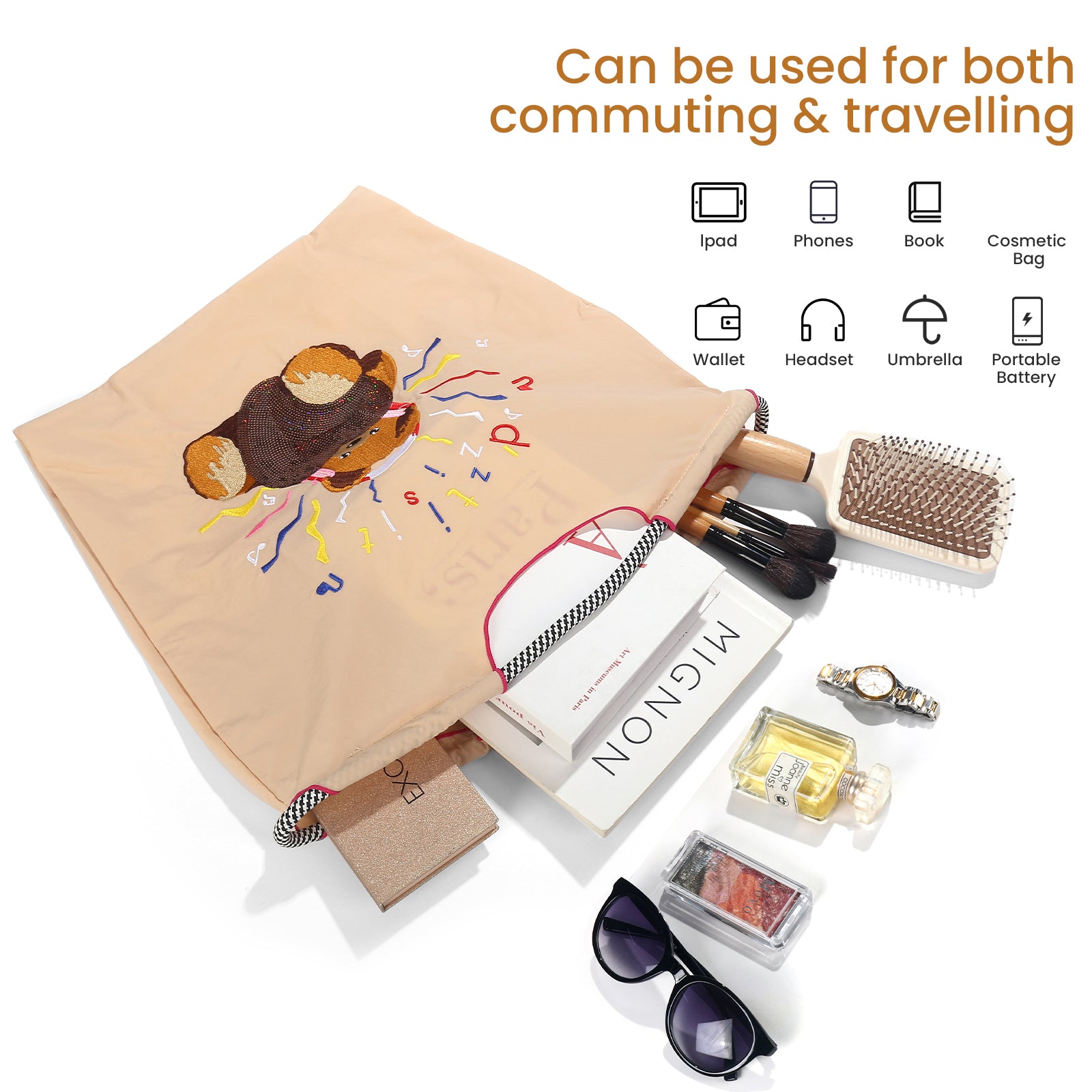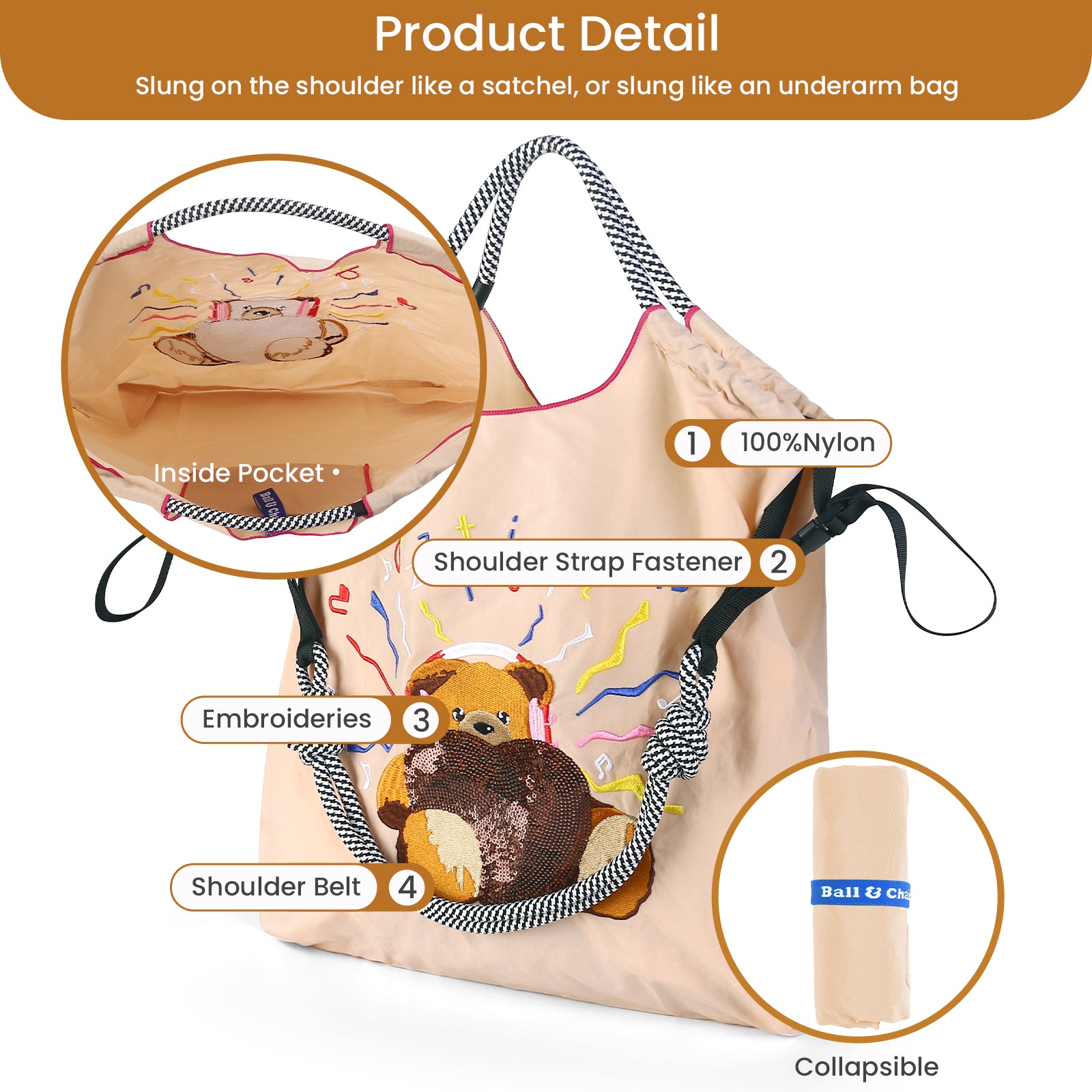 Ball&Chain Embroidery Initial Nylon Tote Bag,Personalized Present Suitable for Travel(L)