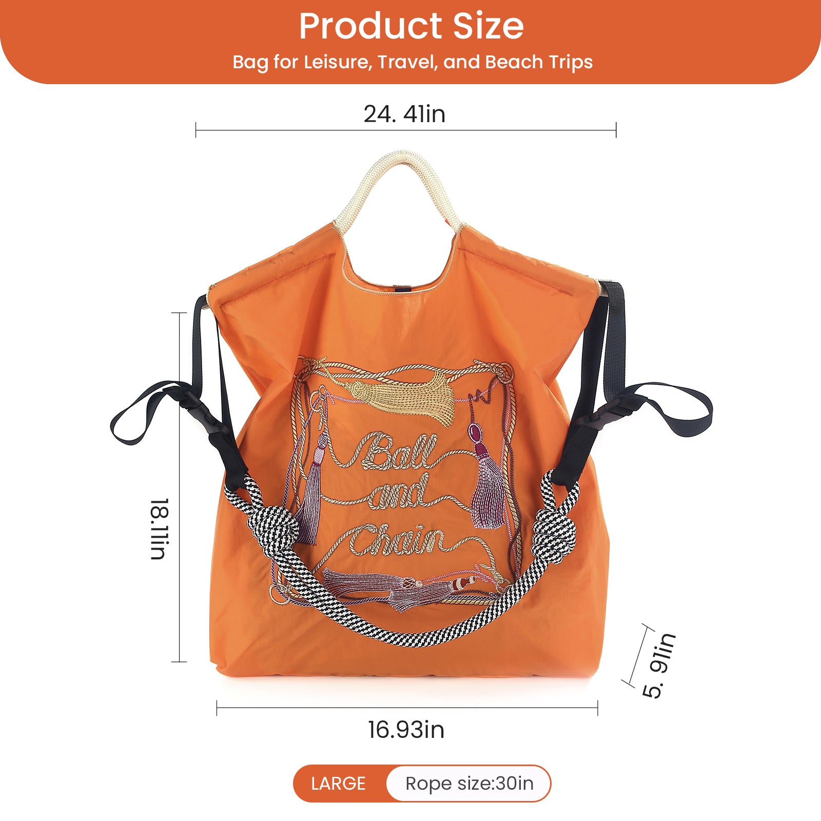 Ball&Chain Large Tote Bag For Women, Travel Shoulder Bag Top Handle Handbag(L)