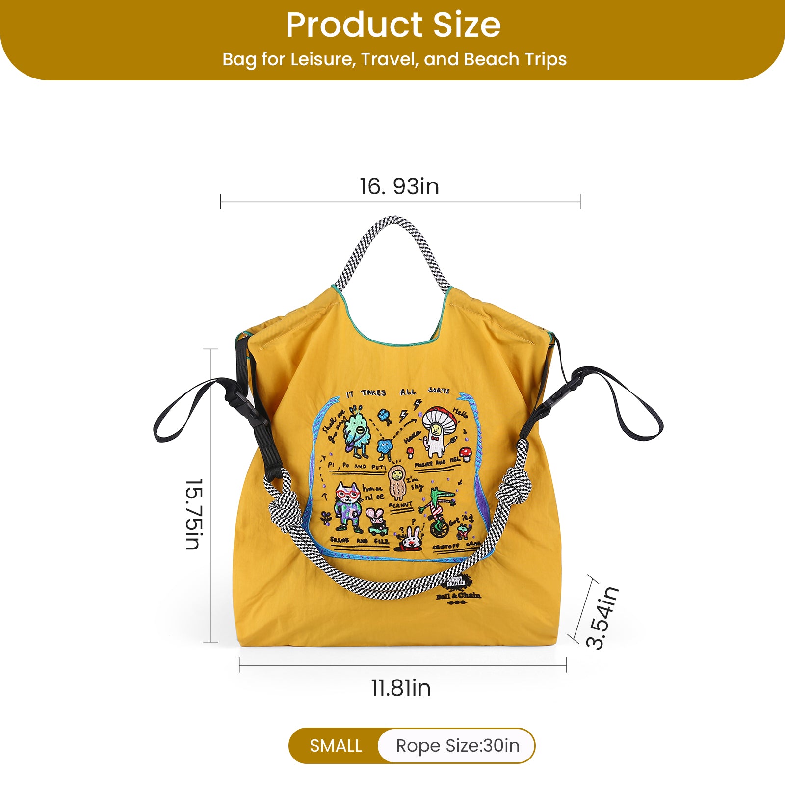 Ball&Chain Shoulder Tote Bag for Women, Nylon Top-Handle(M)