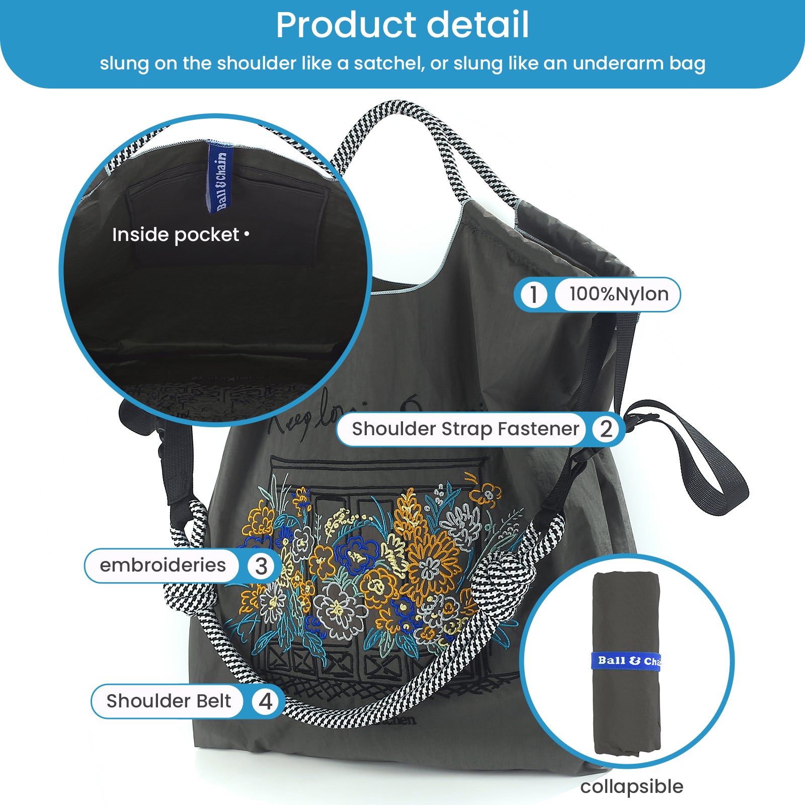 Ball&Chain Summer Embroidery Beach Tote Bag - Stylish, Spacious, and Perfect for Women, Friends Great Gift.(L)