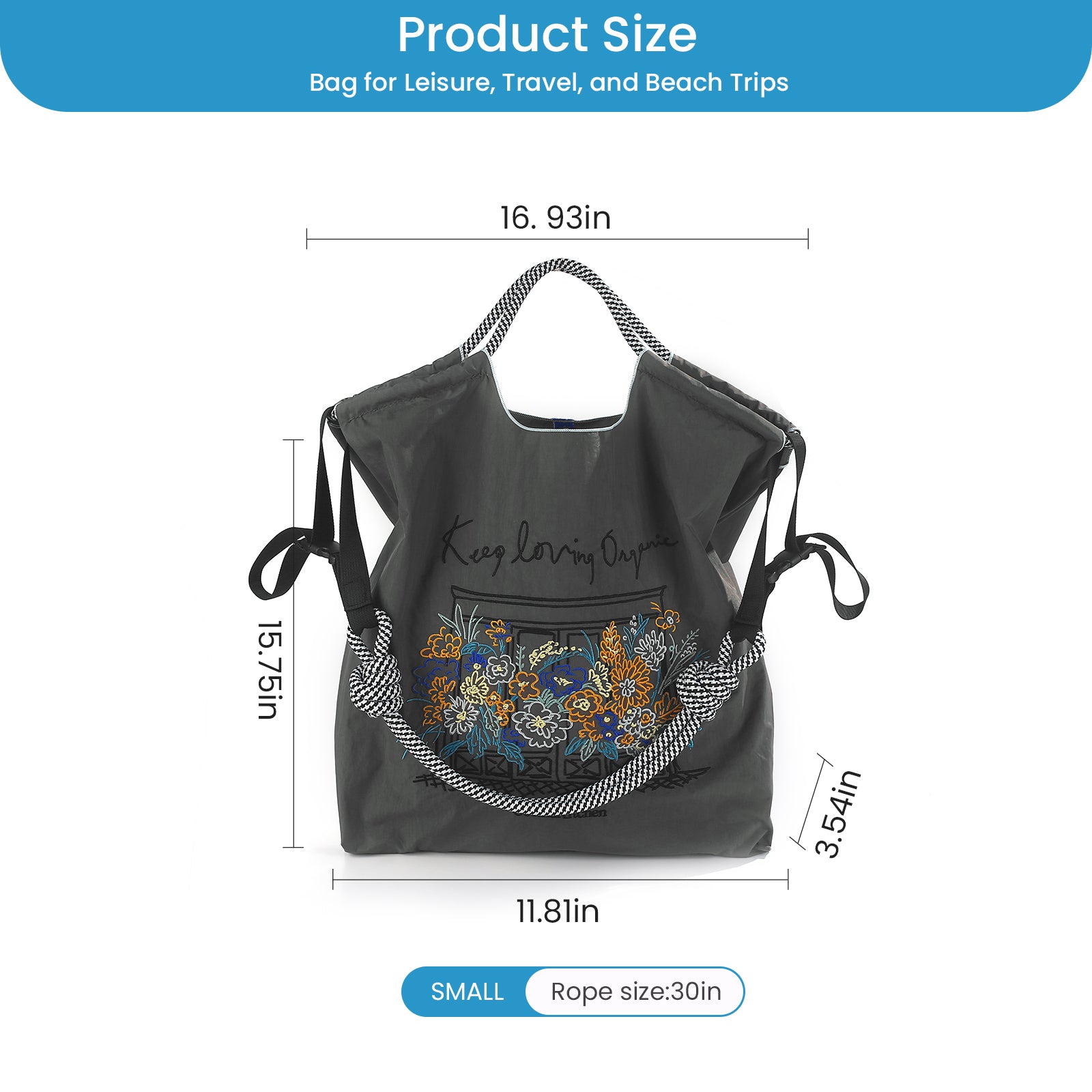 Ball&Chain Summer Embroidery Beach Tote Bag - Stylish, Spacious, and Perfect for Women,Mom(M)