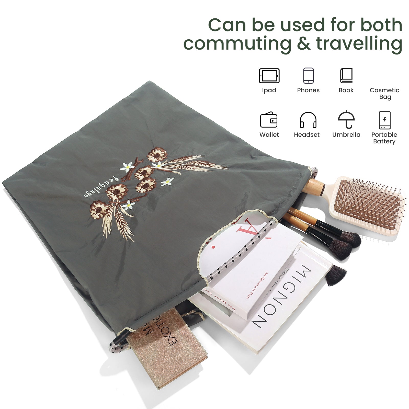 Ball&Chain The Embroidery Ultimate Nylon Tote Bag for Women - Perfect for Live Shopping, Travel, Birthdays(M)
