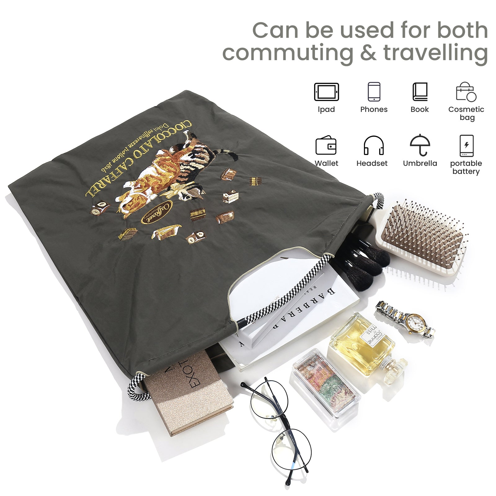 Ball&Chain Women Embroidery Shoulder Handbag Nylon Pockets Bag Ladies Crossbody Purse Fashion Tote Handle Satchel,15x16 in(M)