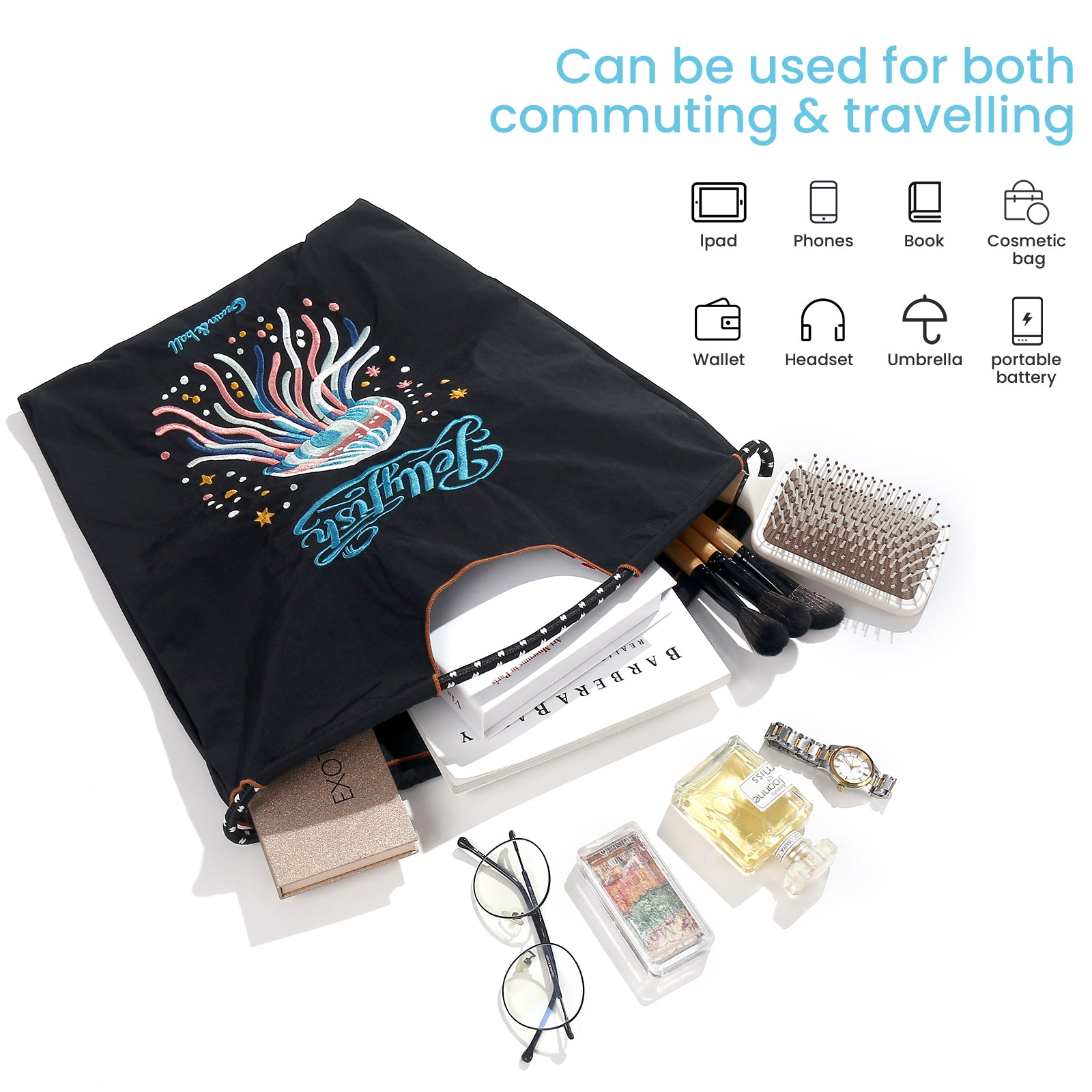 Guan&Ball Lady Tote Bag, a butterfly embroidered patterned nylon bag, is the perfect companion for travel