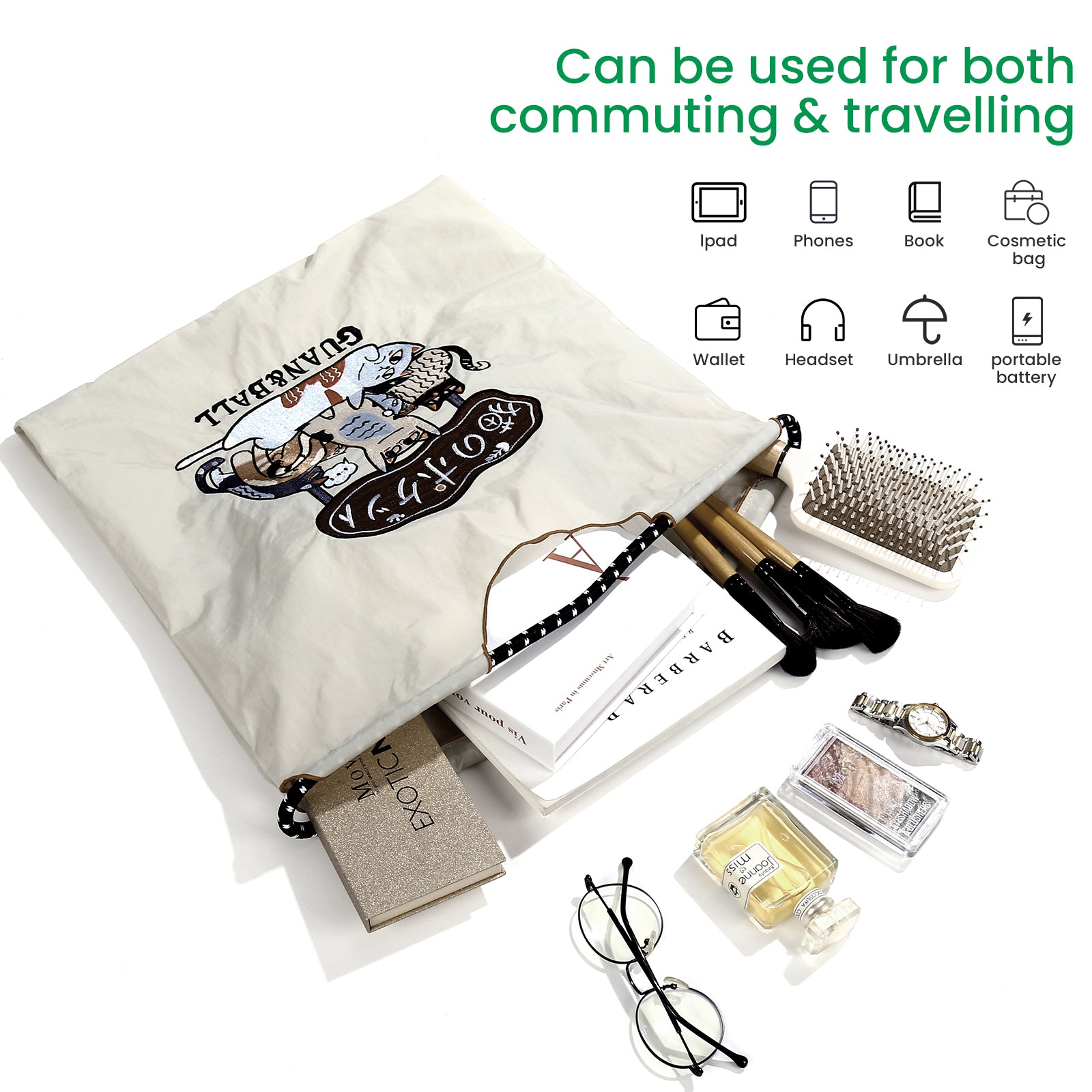 Guan&Ball The Lady Tote bag, waterproof nylon bag with lamb embroidery pattern, is the perfect companion for travel